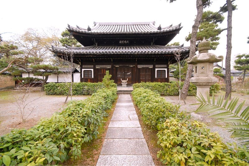 武野紹鴎、千利休がここで禅の精神を学び「わび茶」を確立。利休好みの茶室「実相庵(じっそうあん)」や、千家一門の供養塔などがある。