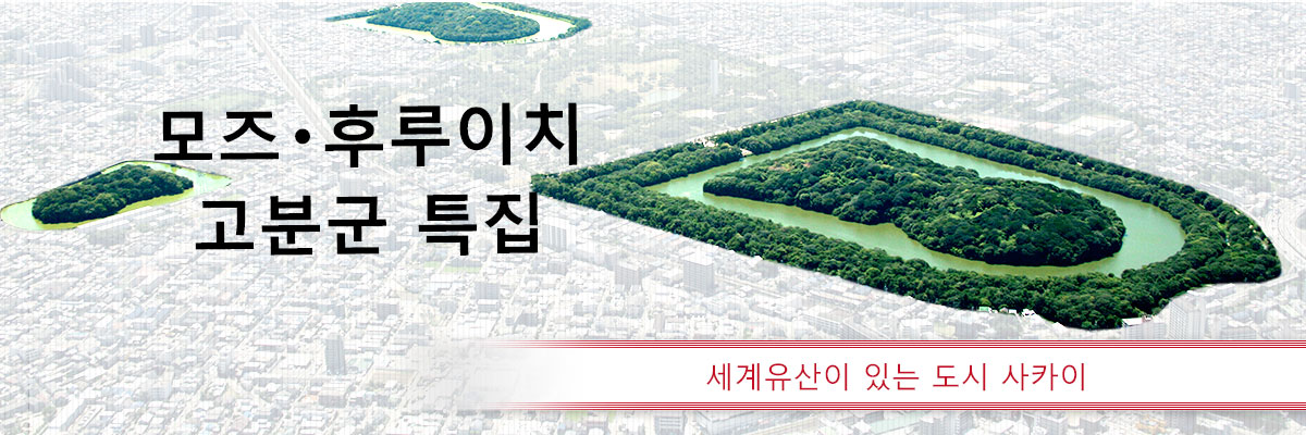 고분이란 3~7세기의 일본에서 축조된 거대한 무덤을 말합니다. 흙을 높이 쌓아 올린 언덕 모양을 하고 있으며, 지위가 높은 사람이나 권력자가 묻혔습니다. "모즈ㆍ후루이치 고분군"은 4세기 후반부터 6세기 전반에 걸쳐 오사카부 남부에 축조된 고분의 총칭입니다. 200개 이상이 축조되었고, 현재도 89개가 남아 있으며, 그 가운데 사카이시의 고분군을 "모즈 고분군", 하비키노시ㆍ후지이데라시에 걸쳐 있는 고분군을 "후루이치 고분군"이라고 합니다. 2019년7월에 아제르바이잔의 수도, 바쿠에서 열린 유네스코 세계유산위원회에서 오사카 최초의 세계유산으로 등재되었습니다.